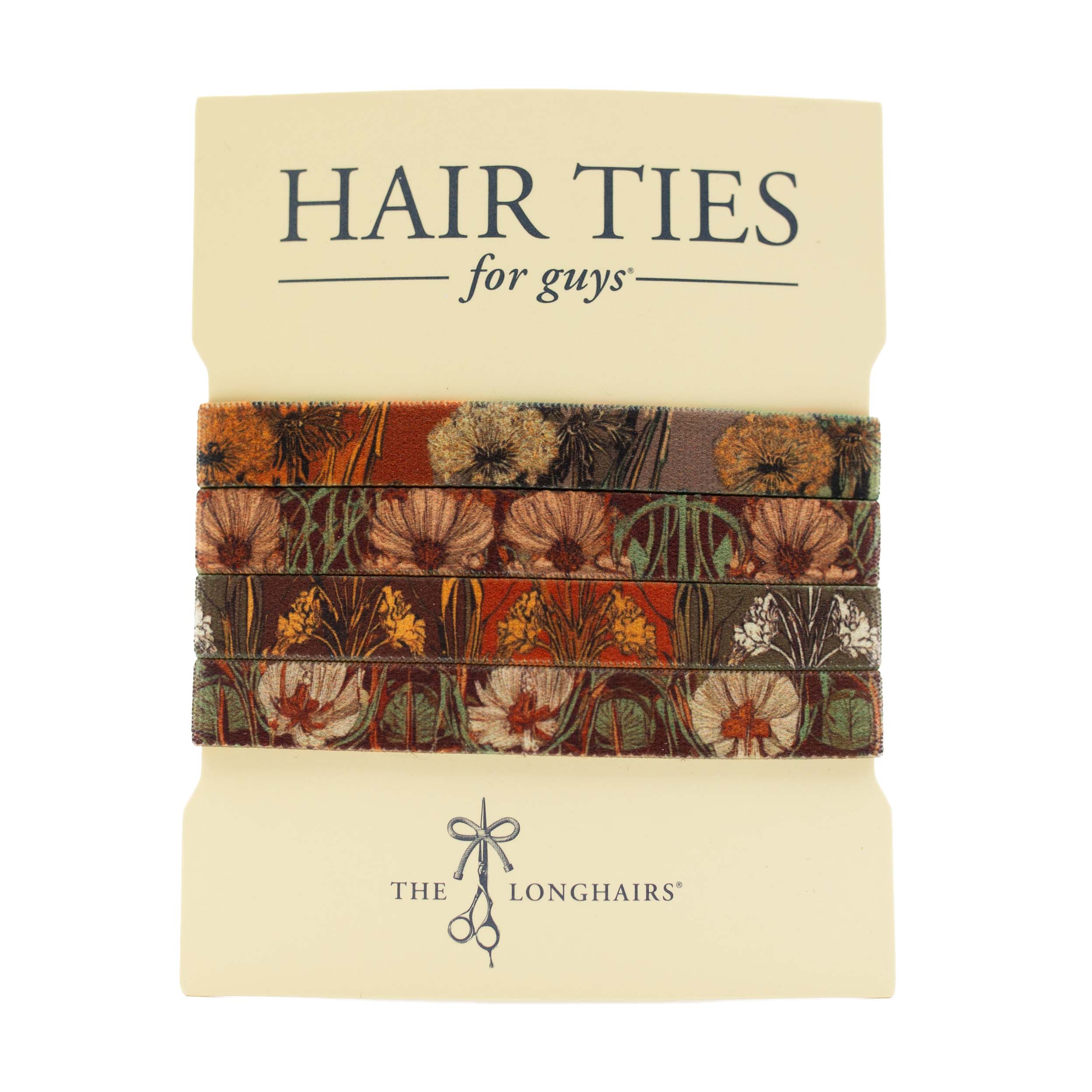 Close cousins to The Floral Nouveau and reminiscent of Victorian pressed flower albums, these floral noir hair ties feature muted, melancholic blossoms with a dark, shadowy aesthetic, conveying the understated beauty of decay.