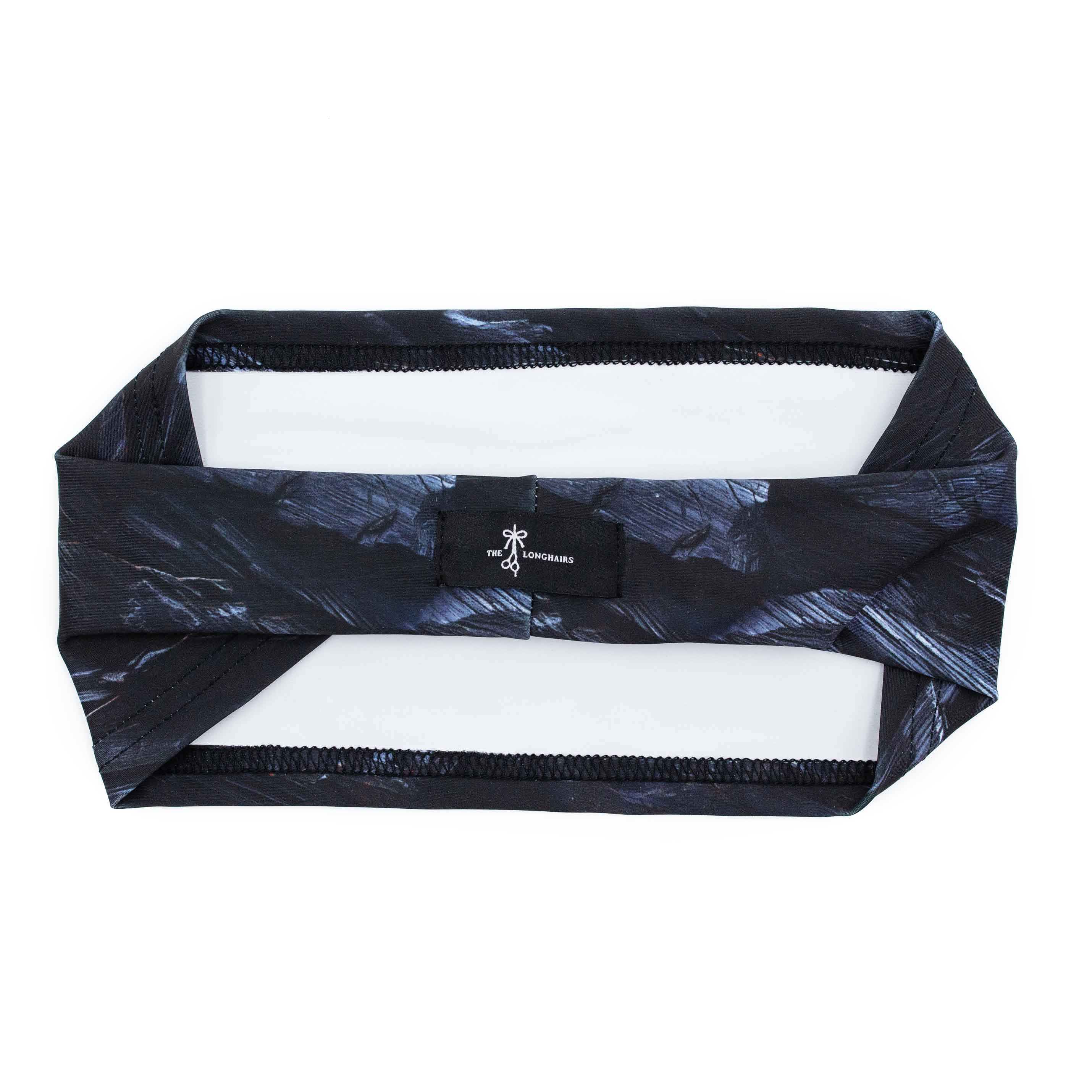 Black deeper than midnight, appearing sharp, brittle and glassy, you’ll find this obsidian headwrap is actually soft, stretchy and ultra comfy.