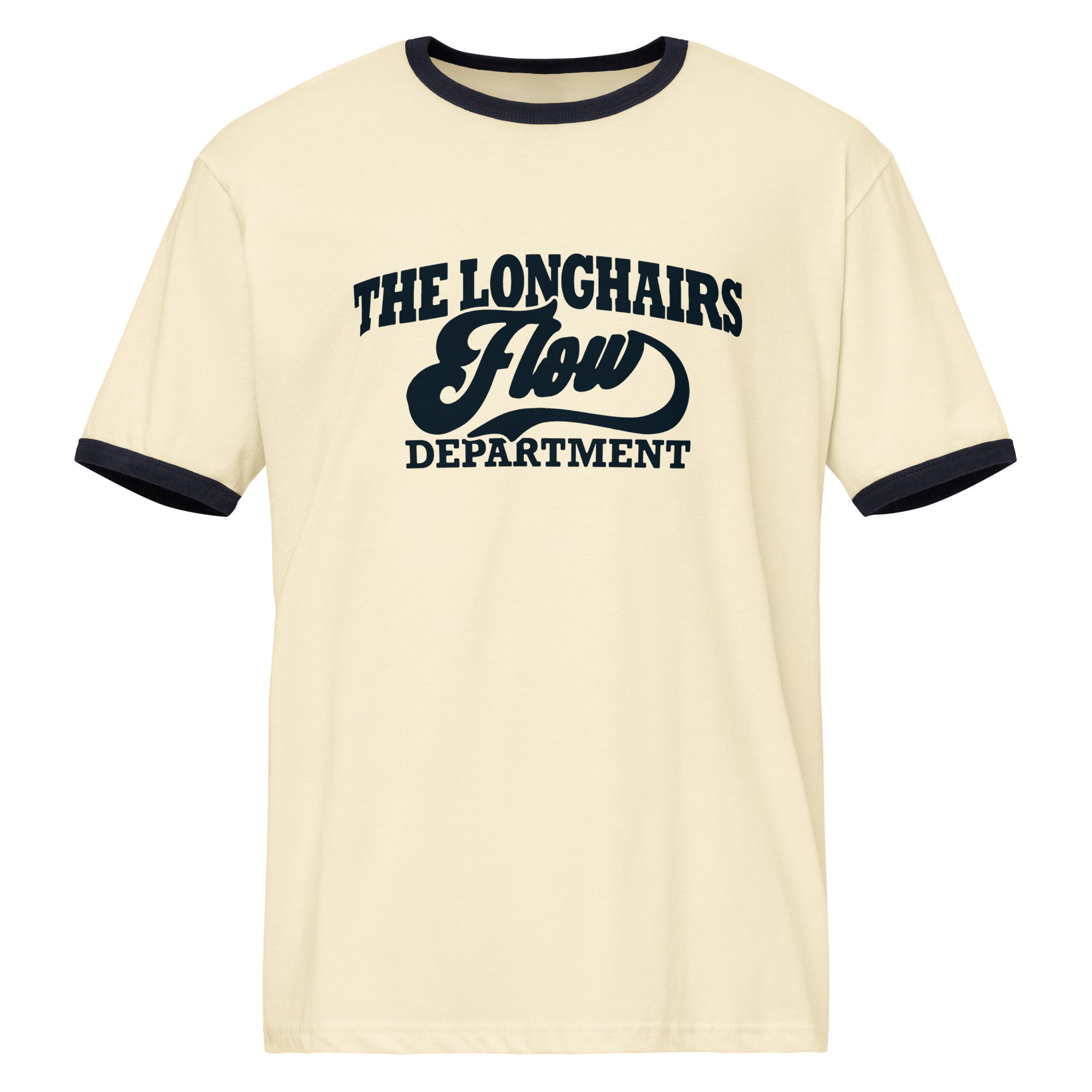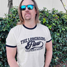 A retro ringer tee featuring contrast trims and a relaxed fit for a classic throwback look, proudly displaying the Seal of the Department of Flow.